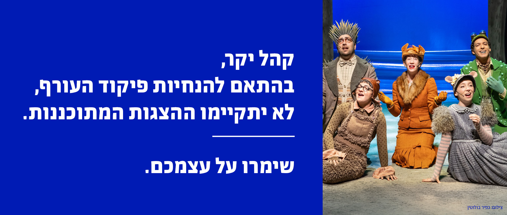 *על מנת שלא לפגוע במהלך התקין של ההצגה ובהנאת הצופים: לא תתאפשר כניסה לילדים מתחת לגיל 3 ו/או עם עגלות להצגות.